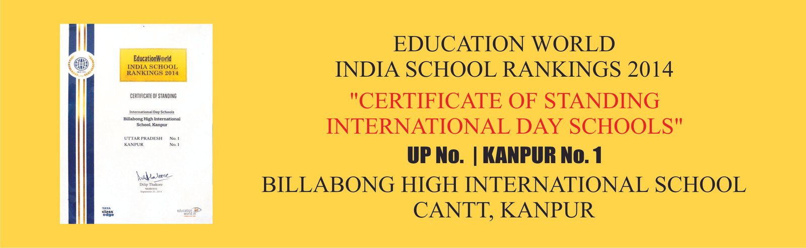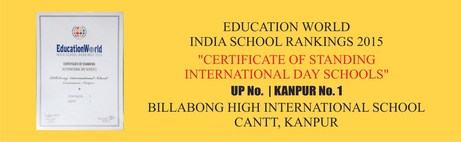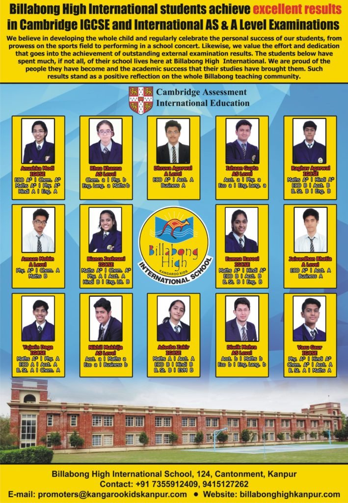 BILLABONG HIGH INTERNATIONAL SCHOOL, CANTONMENT, KANPUR, INDIA AWARDED FOR BEING AN EXCEPTIONAL SCHO