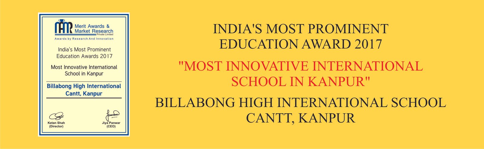 - Most Innovative International School in Kanpur by Merit Awards and Market Research 2017.