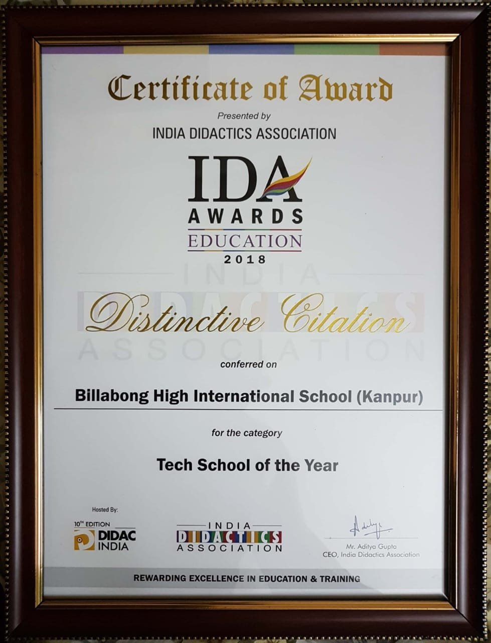 - Distinct Citation as ‘Tech School of the Year’ at IDA Education Awards, 2018
