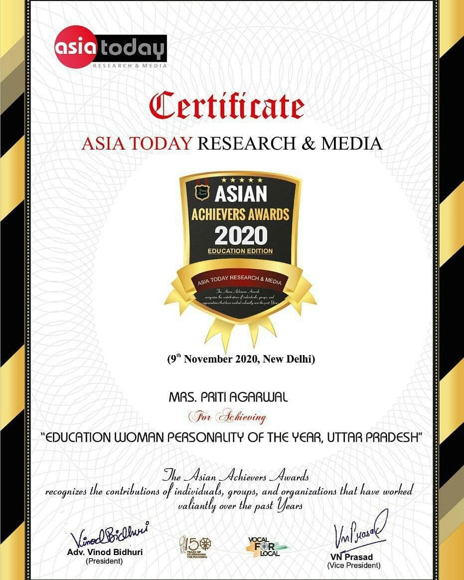 Mrs. Priti Agarwal, Founder and CEO, has been awarded with exemplary honours. Some notable recent ones include: