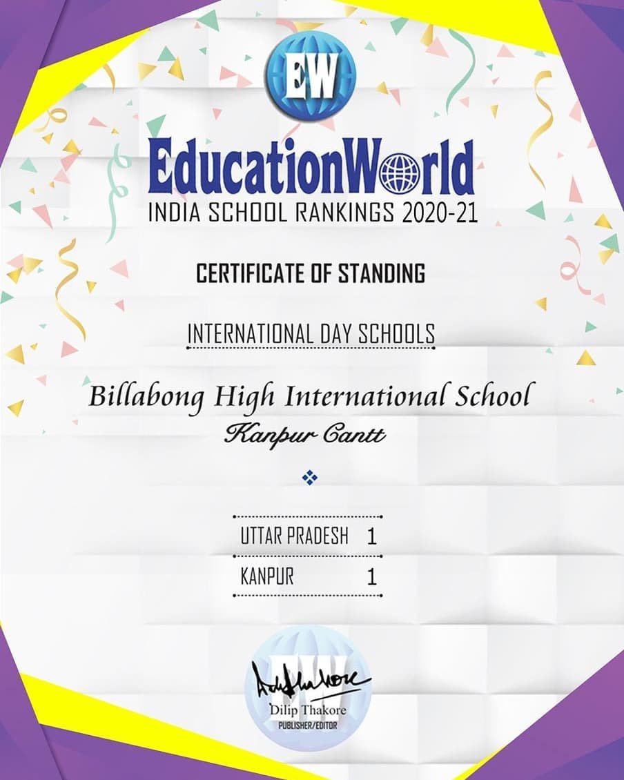 Ranked Uttar Pradesh’s #1 & Kanpur’s #1 International Day School in the EducationWorld India School Rankings for six consecutive years since 2014 till 2019.