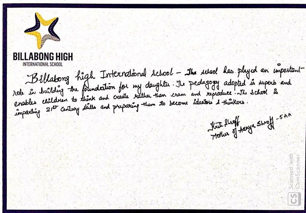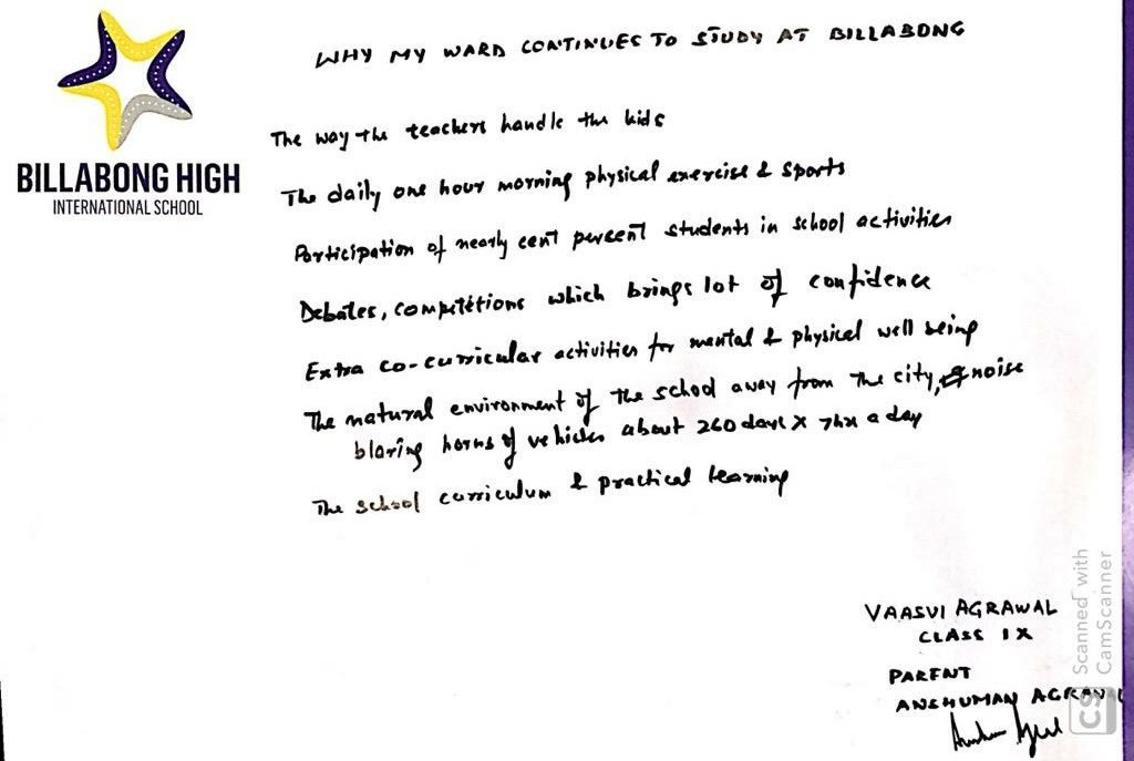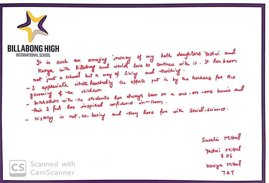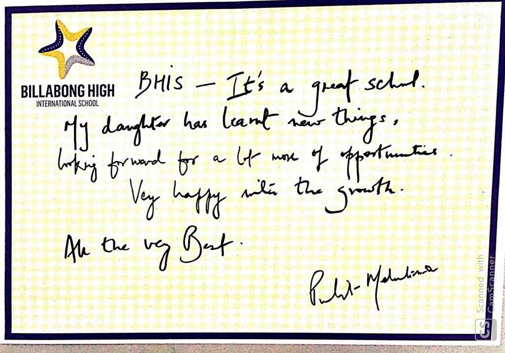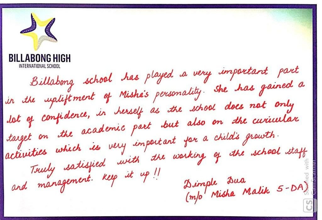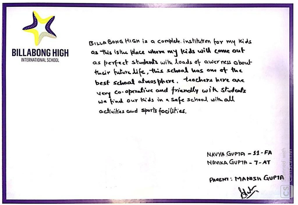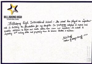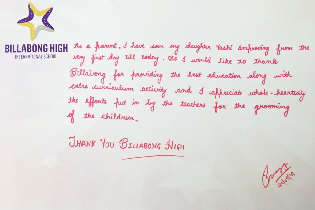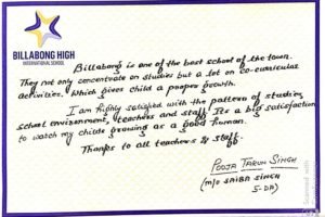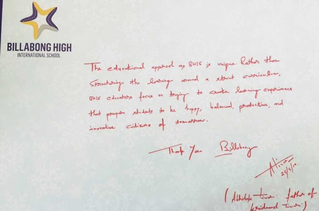 “It’s a pleasure to write to you and I am happy to express my feelings for my experience with Billabong High, Kanpur and also with you as the Mentor of the institution. Staring with a confused mind few years back and today I stand convinced and committed for my decision to enroll my child in the institution that has grown with a difference.
