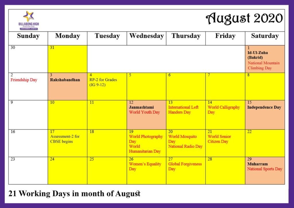 August calendar