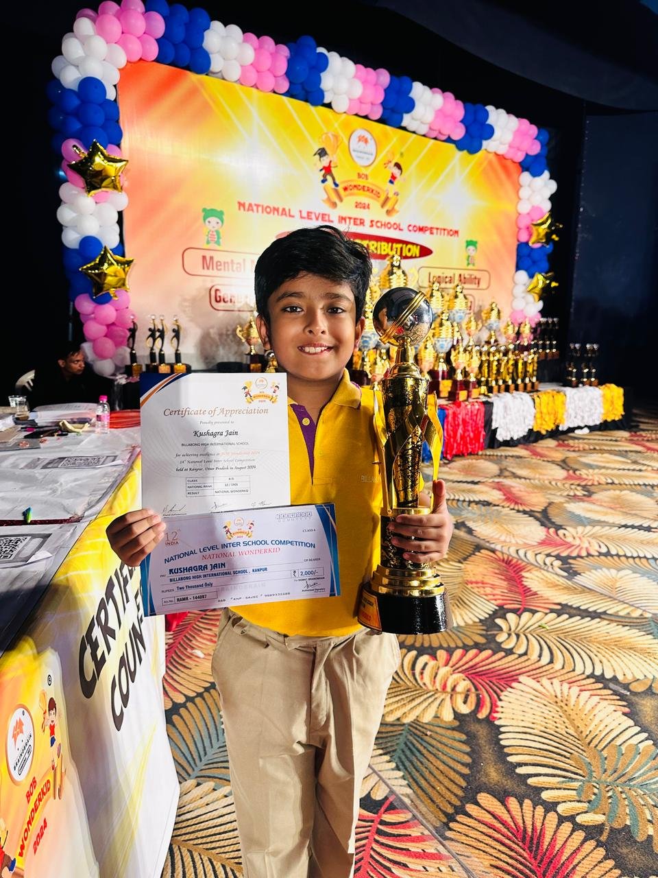 Big applause for Kushagra Jain who secured 12th rank By Billabong High Kanpur on October 7, 2024 in News Big applause for Kushagra Jain who secured 12th rank at the prestigious BOB Wonderkid Competition 2024 held at Lajpat Bhavan, Kanpur! His determination and talent have put him among the brightest young minds, and we couldn’t be more proud!