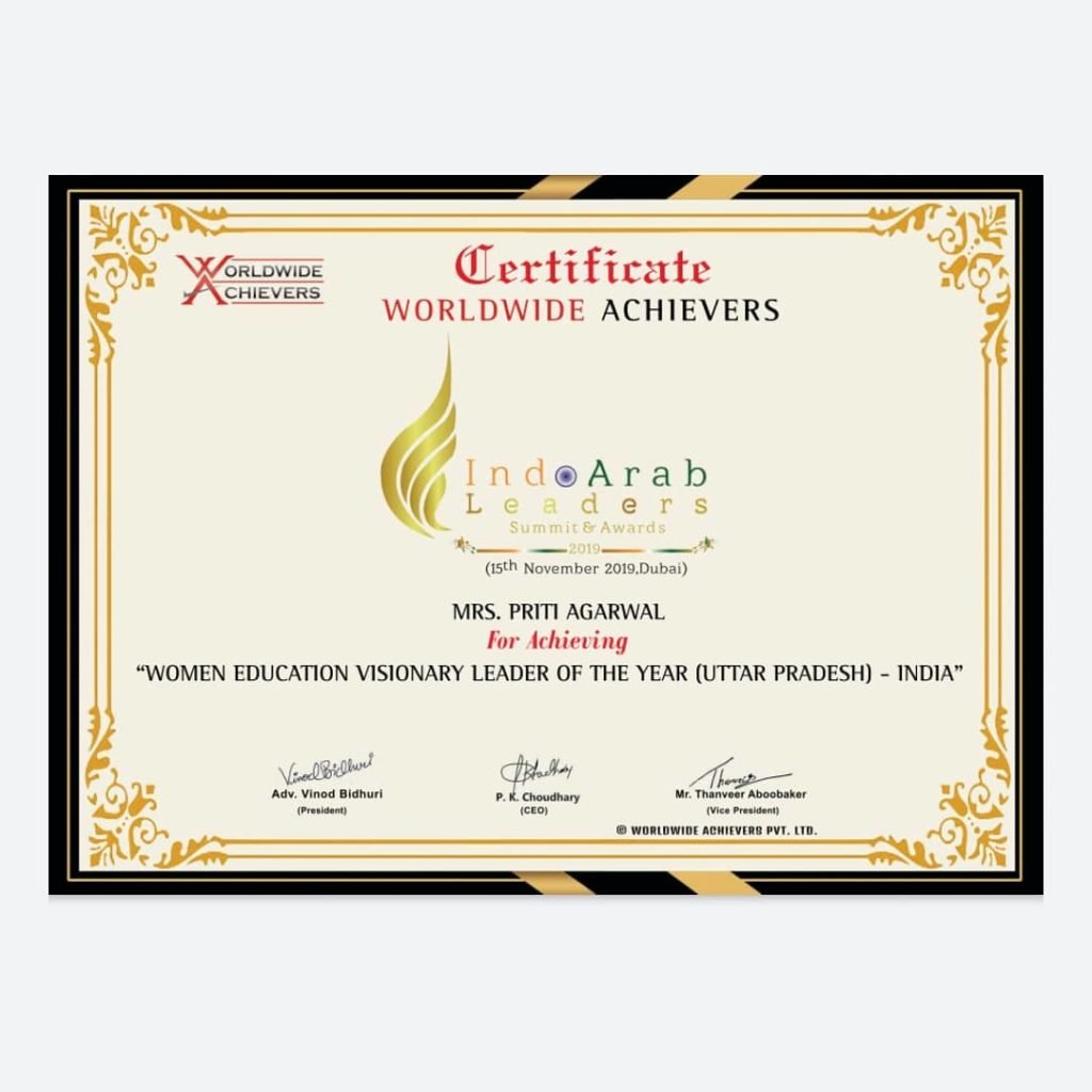 BHIS Kanpur and the founder & CEO, Ms. Priti Agarwal have been felicitated in Dubai at the prestigious awards by Worldwide Achievers.
