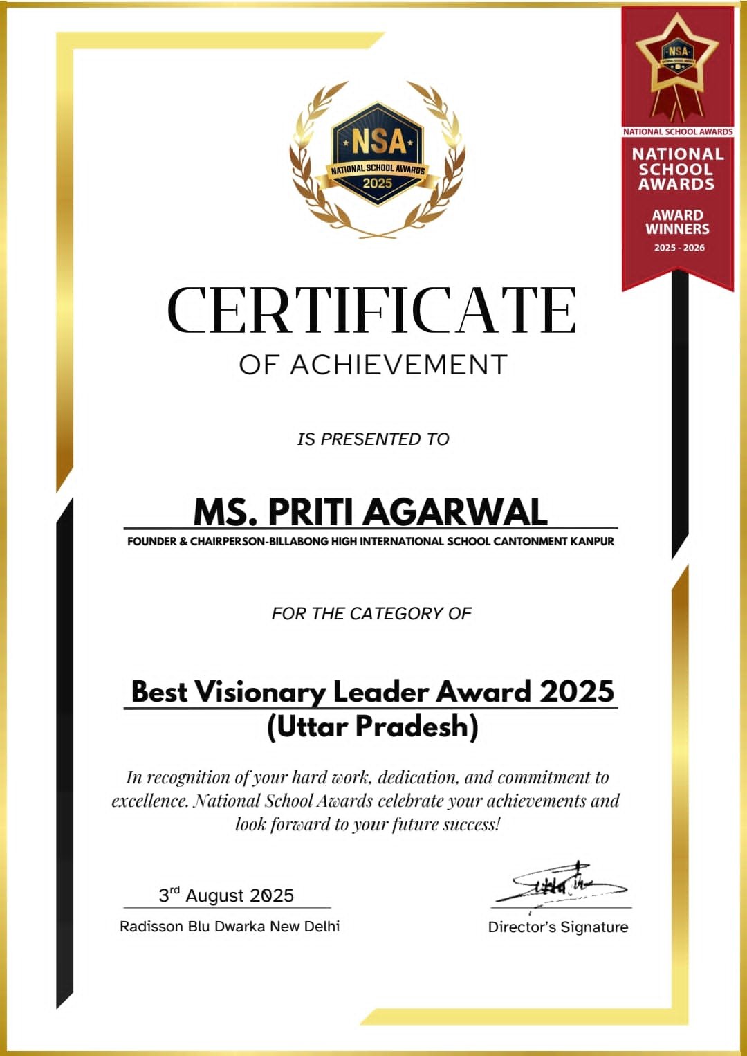 The stage was set, the spotlight found its mark… and Billabong High International School, Cantonment Kanpur rose to the occasion… crowned Best School for Progressive Learning 2025 in Uttar Pradesh!